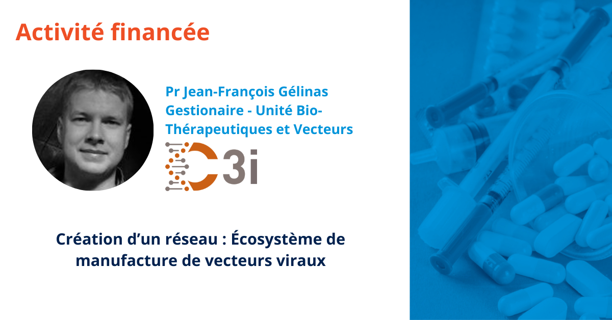 Le Centre C3i inc. (C3i) et ses partenaires proposent la création d’un nouvel écosystème permettant de relier la découverte vers l’application clinique dans le domaine de la production de vecteurs viraux, un secteur névralgique où la production de niveau clinique est un facteur hautement limitant et coûteux. Cette activité structurante survient à un moment crucial alors que C3i et le Centre intégré universitaire de santé et de services sociaux de l’Est-de-l’île-de-Montréal (CIUSSS-EMTL) établissent présentement à l’Hôpital Maisonneuve-Rosemont (HMR) la première unité de production de produits de thérapie génique conforme aux bonnes pratiques de fabrication (BPF, mieux connues comme « Good Manufacturing Practices – GMP ») au Canada. La présente activité crée l’écosystème, auquel il ne manque que les éléments de la présente demande, afin de créer une véritable chaîne d’approvisionnement qui potentialisera et accélérera le développement clinique de nos découvertes. Les partenaires de cette activité sont le cégep Gérald-Godin, des laboratoires de recherches des institutions suivantes Centre hospitalier universitaire Ste-Justine (CHUSJ), le Centre de recherche de l’Hôpital Maisonneuve-Rosemont (CRHMR) et l’Institut de recherche en immunologie et cancer (IRIC), le CIUSSS-EMTL et les compagnies de biotechnologie Modulari-T, VVector Bio et C3i.