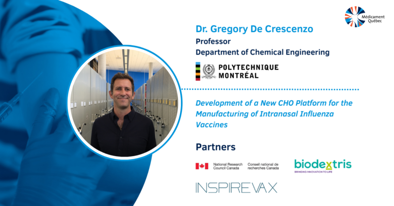 As part of its Vaccine Technology Innovations program, Médicament Québec is supporting four collaborative research initiatives bringing together academia and industry partners. Discover Dr. De Crescenzo’s project focused on developing an CHO platform for the manufacturing of intranasal influenza vaccines.