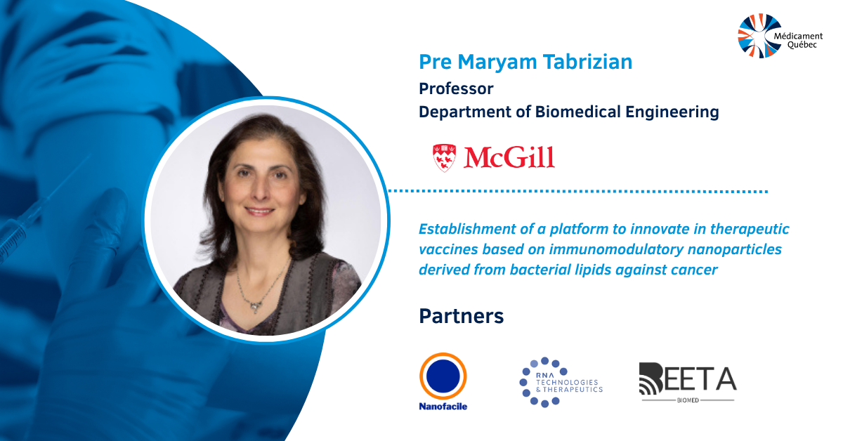 As part of its Vaccine Technology Innovations program, Médicament Québec is supporting six collaborative research initiatives bringing together academia and industry partners. Discover Dr. Tabrizian’s project focused on developing a platform to innovate therapeutic vaccines .