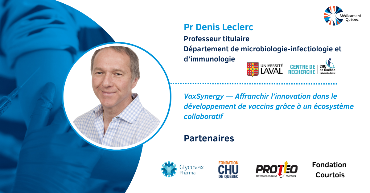 Dans le cadre de son programme Innovations en technologies vaccinales, Médicament Québec soutient six activités de recherche collaborative alliant milieux universitaires et partenaires industriels. Découvrez le projet de Pr Leclerc portant sur la plateforme VaxSynergy.